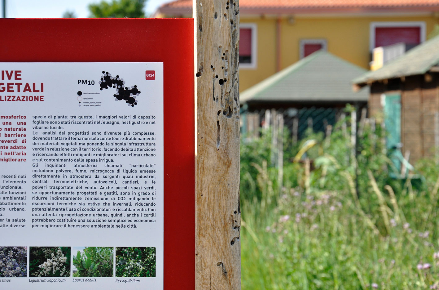 La riattivazione dei beni comuni, e tra questi delle numerose aree inutilizzate sul territorio, mette inoltre in primo piano il tema ambientale, e soprattutto le conseguenze dell’inquinamento di Porto Marghera sui suoli pubblici e privati. L’attuale fase di transizione post-industriale impone una riqualificazione ambientale inquadrata in una più ampia visione di recupero socio-economico sostenibile, che manifesta la necessità di immaginare tempi lunghi di recupero, lontani dalla velocità dell’antropocene. Per creare consapevolezza ambientale e per diffondere il messaggio che una riqualificazione eco compatibile è possibile ed accessibile a tutti, il G124 ha attivato con l’Università di Udine una ricerca sulle tecnologie di bonifica dei suoli attraverso l’uso di specifiche piante e arbusti, il fitorimedio. Come manifesto di una gestione partecipata del territorio sarà realizzata, in un’area a sud di Marghera, una sperimentazione pilota che riporterà un lotto incolto all’uso pubblico: il “Giardino del fitorimedio”.