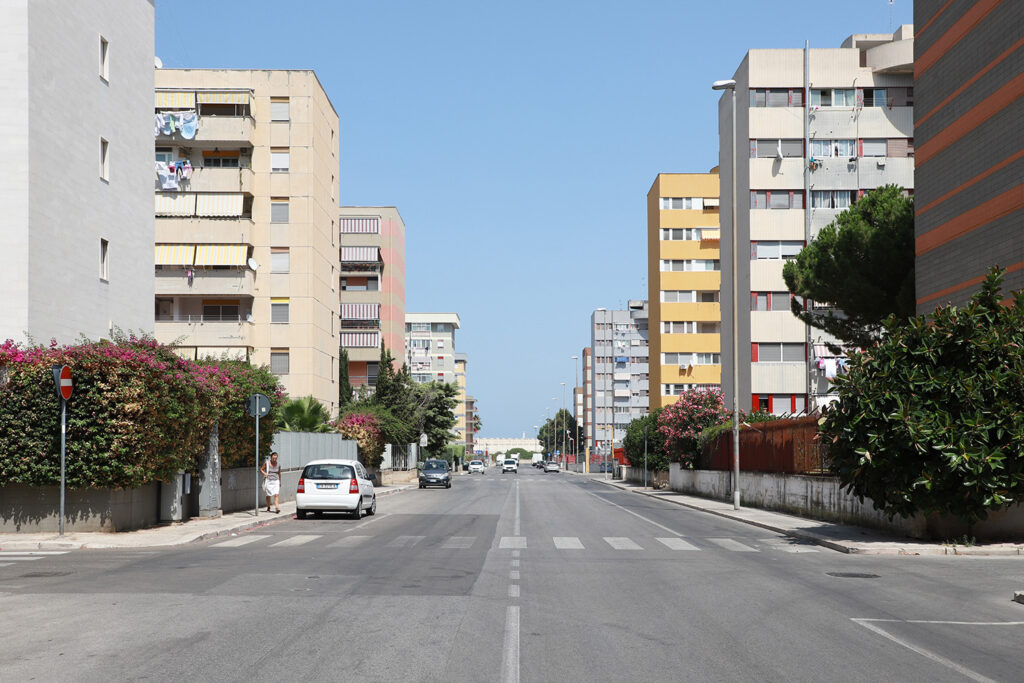È il più grande dei quartieri popolari di Bari (conta circa 30mila abitanti, nda), oltre ad essere tra i più problematici per ragioni sociali e per degrado fisico delle sue costruzioni e dei suoi spazi. Il quartiere è stato costruito sostanzialmente in tre tempi diversi: la prima parte, quella più storica, fa riferimento al primo settennato del piano Ina-Casa, il progetto risale al 1958. Successivamente è stato ampliato con progetti del ’63 che fanno riferimento a due distinti Piani di zona per l’edilizia economico e popolare (Peep). Queste tre parti sono tenute insieme da un asse di servizi sorto in corrispondenza della linea metropolitana leggera, che collega in 10 minuti il quartiere al centro di Bari.